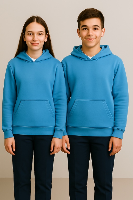 * Turkuaz renkli, fermuarsız ve kapüşonsuz swet